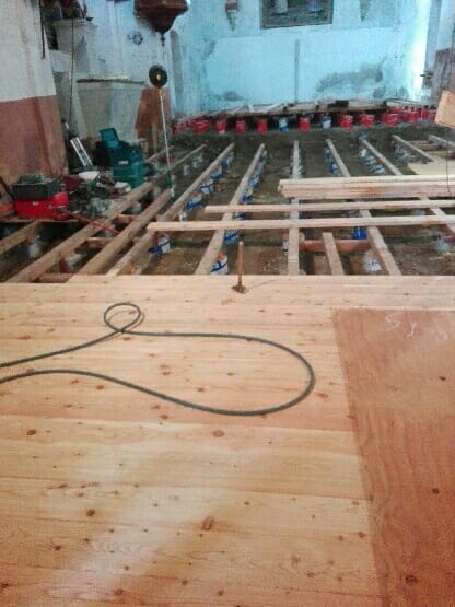 menuiserie dite de bâtisse ; elle-même se divise en menuiserie dormante et menuiserie mobile. Par menuiserie dormante on entend celle qui concerne les pièces posées à demeure telles que les escaliers, les dormants, les chambranles de portes et croisées, les boiseries, les stalles des chœurs d’église, les confessionnaux, les chaires à prêcher, les corniches, structures de. charpente etc.